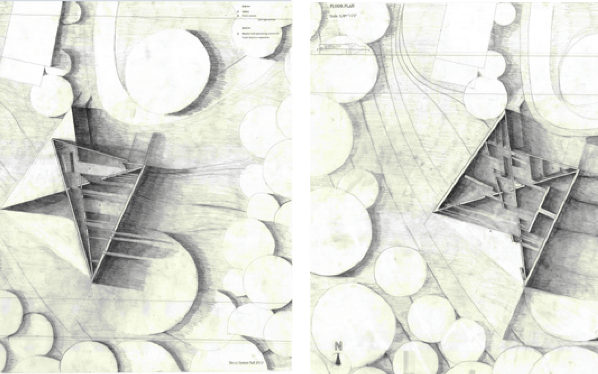 The left hand drawing is at a 1/8”=1’ scale. There is a roof that can be accessed during summer seasons and there can be an open exhibition space. The right hand drawing is at a 1/8”=1’ scale. We can see the different separation of the spaces with a garderobe in the residence and a library in the classroom.